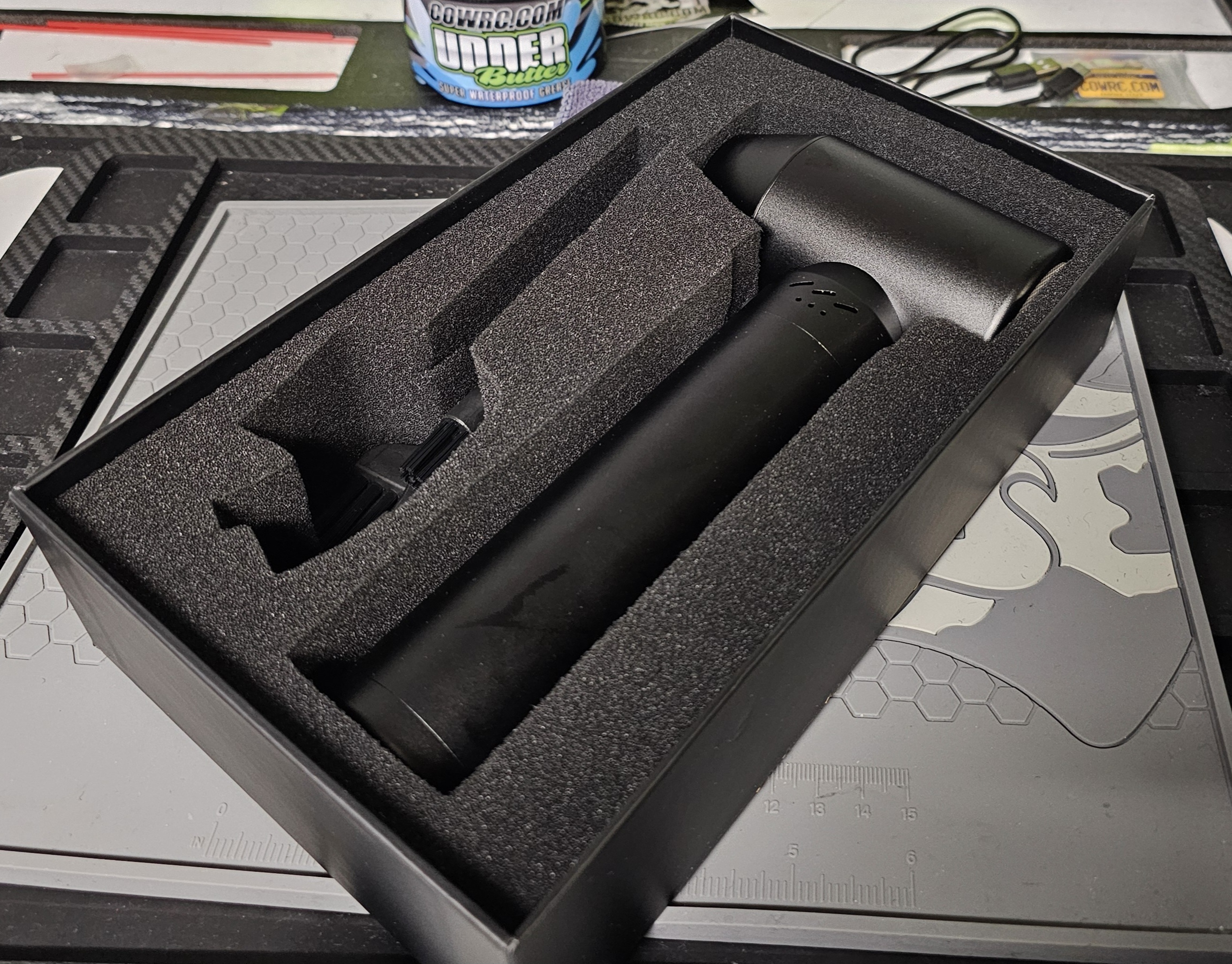 This is the question you need to ask yourself. Do you want a Mini Blaster that has great battery life, aluminum body, variable speeds, cordless, rechargeable with an absurd amount of power? If so, then this Blaster is for you. Also keep in mind, this is perfect for non related RC needs such as drying off that freshly washed motorcycle or using the vacuum attachment for cleaning the mess you made before your significant other gets home. Oh, I almost forgot, CowRC Skinz are available for this bad boy just like the rest of the blowers CowRC has to offer. See ya at the track!!